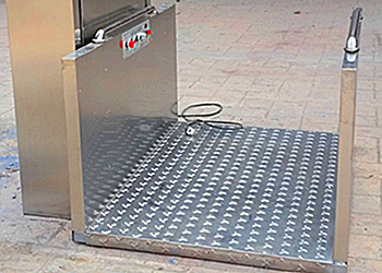 無障礙殘疾人專用升降平臺由載人平臺、導軌和驅動箱等三大部分組成;載人平臺是由C型鋼材為主體部分,采用“翹板自復位開關操作運行”,無基坑式安裝,直接固定于混凝土地面(無地坑室外應用情況下,平臺下方混凝土地面不得低于周圍地面),手動液壓閥打開時升降底板能手動下降;液壓驅動,升降平穩,安全,外部采用拉絲不銹鋼材料和鋁板靜電噴塑機箱/面板,外形小巧美觀,不阻礙周圍環境。殘疾人升降機直接安裝于地面,無需土建配套地坑,施工簡單,產品放置戶外不易積水,不易生銹,維護簡單。